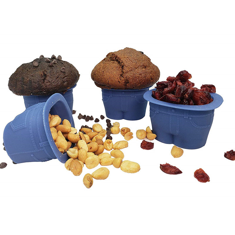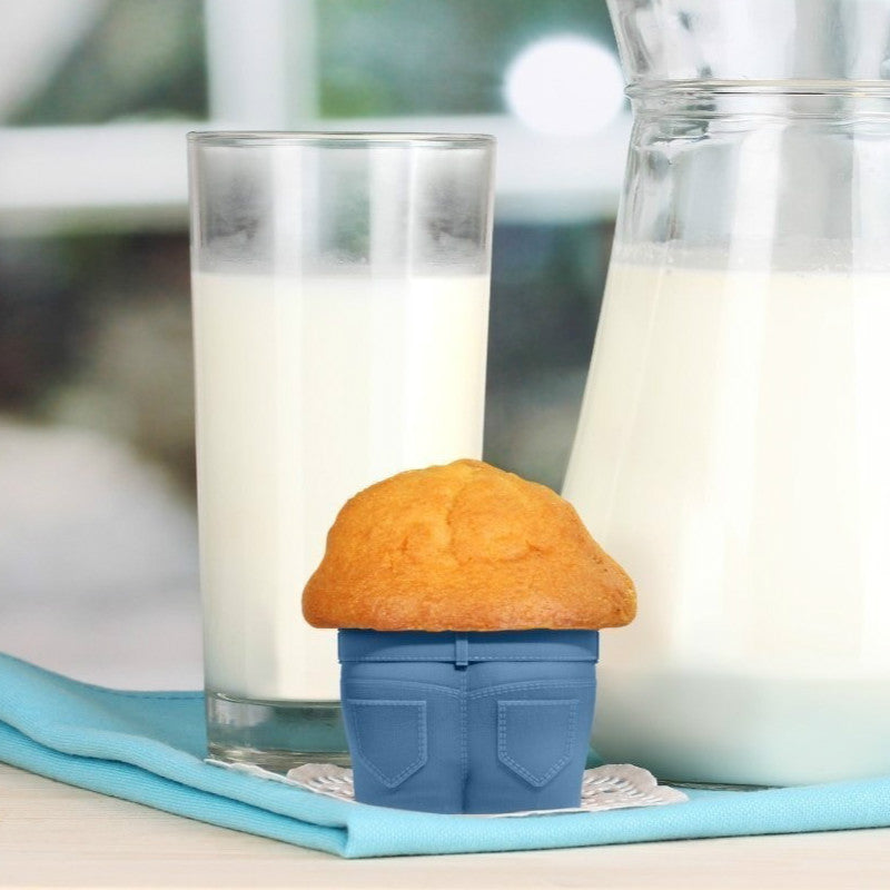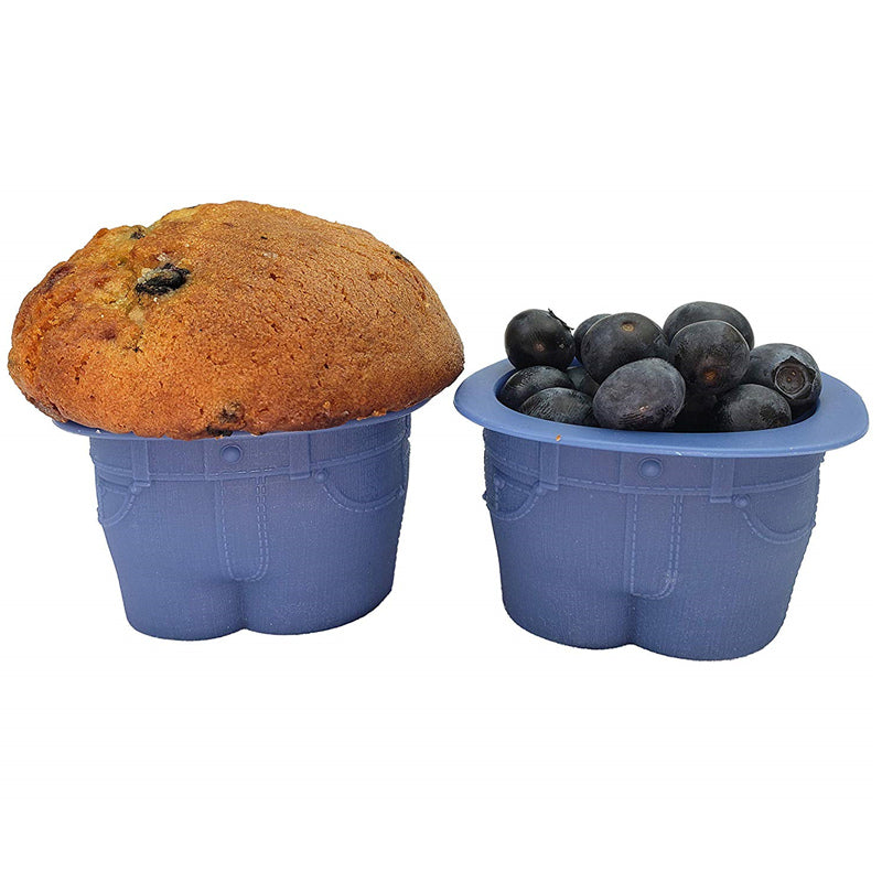 The muffin top molds take the deliciousness of cupcakes, and turns them into a self indulgent delight of sugar, flour and fatty goodness. The chubby jeans muffin molds come in a pack of 4 molds, are made from silicone, and are sure to make you take a good hard look at your life and where it's going.